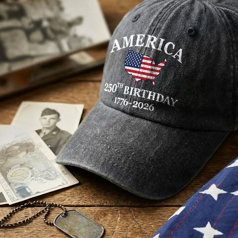 The Historic Milestone: Bold, vintage-style lettering proudly declares “AMERICA” alongside the historic dates “1776-2026” and “250TH BIRTHDAY”, making this hat a true commemorative keepsake.