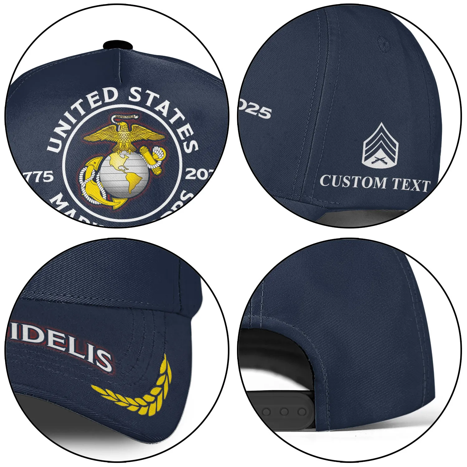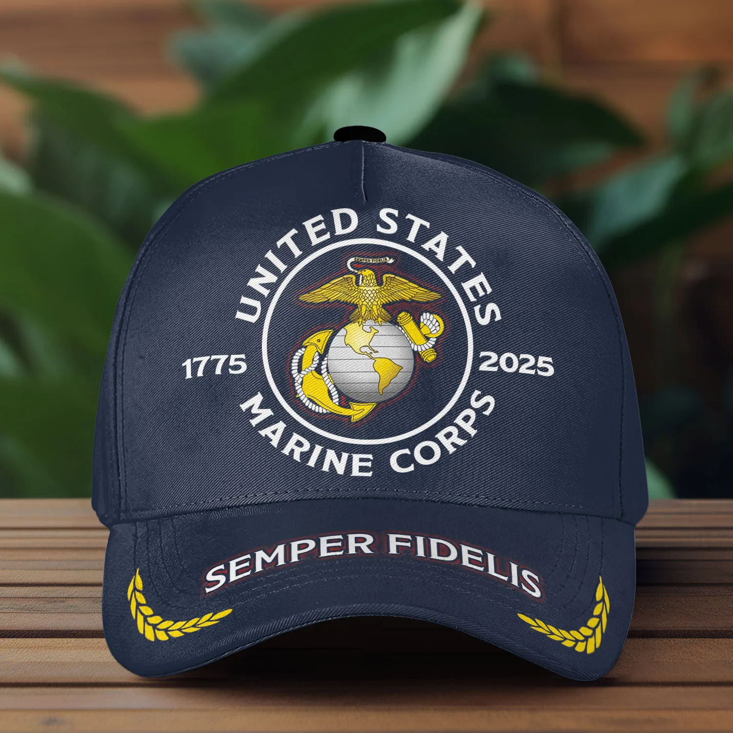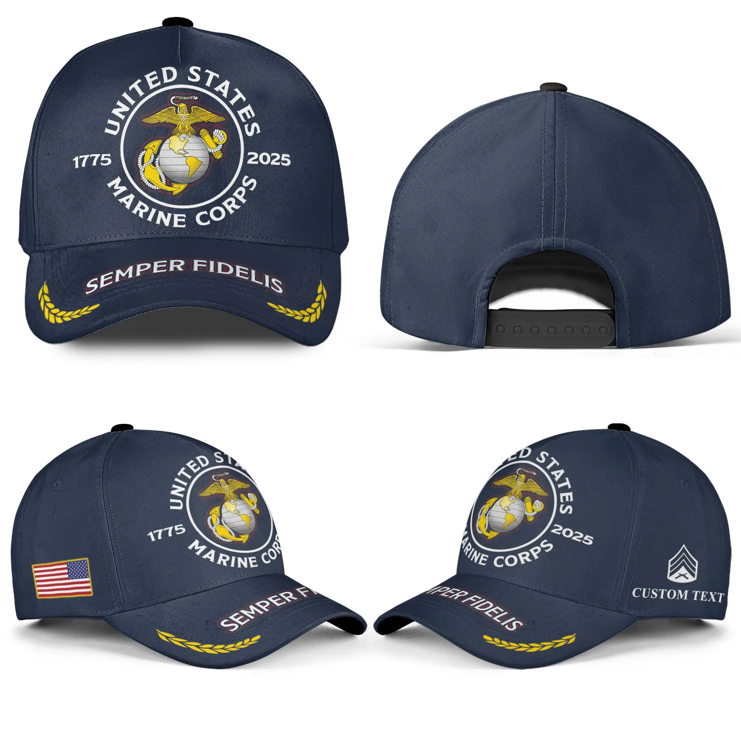 Classic USMC 250th Anniversary Printed Hat – Custom Rank & Name #000226