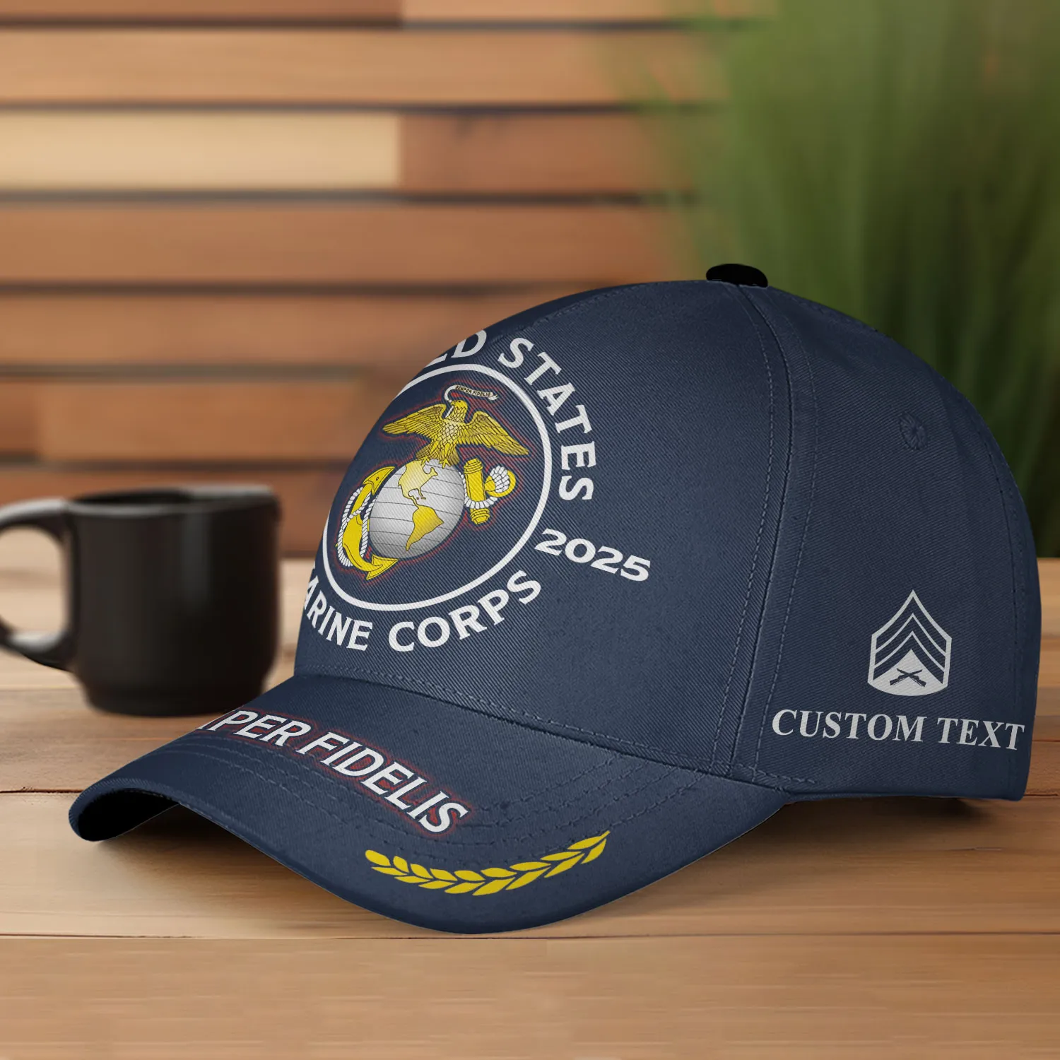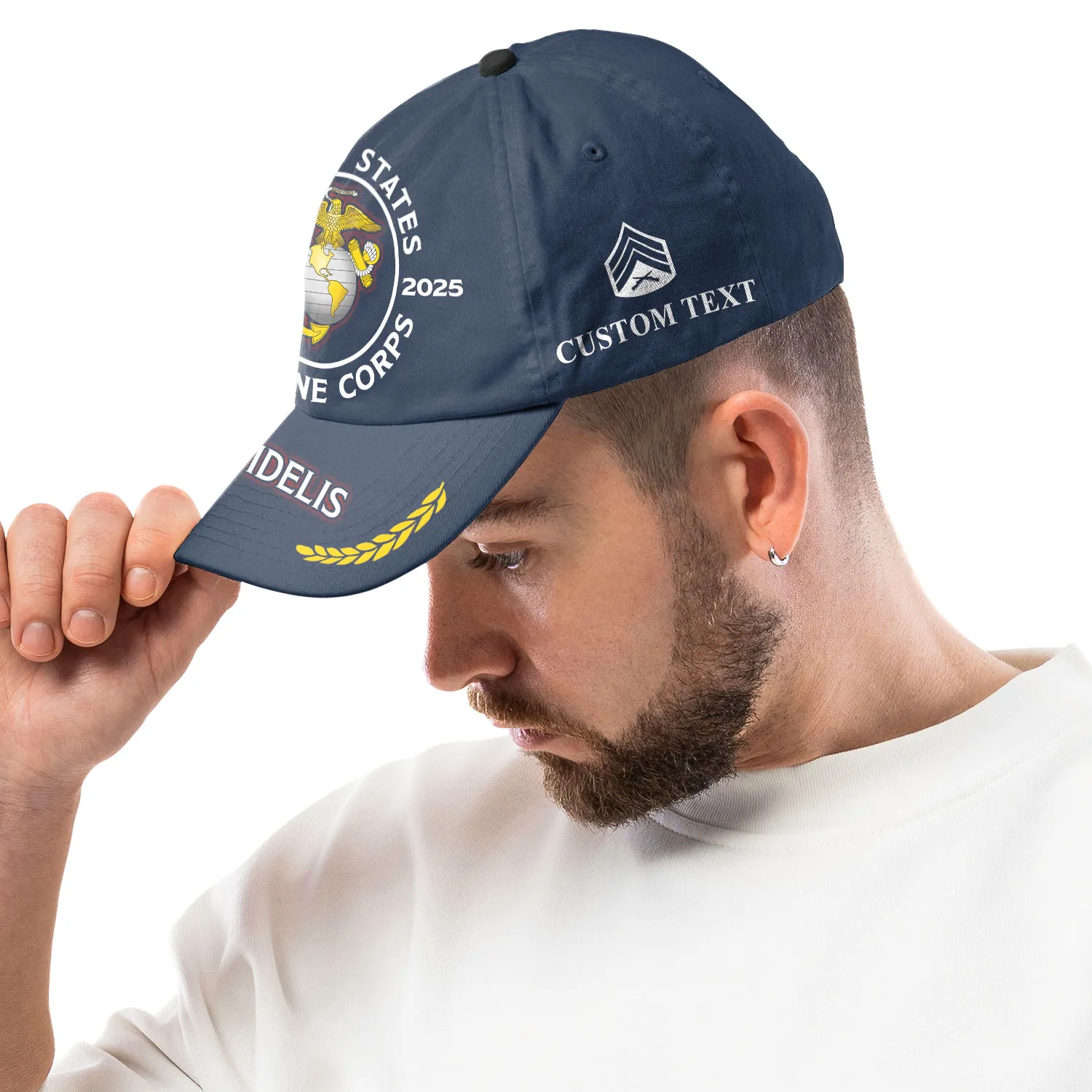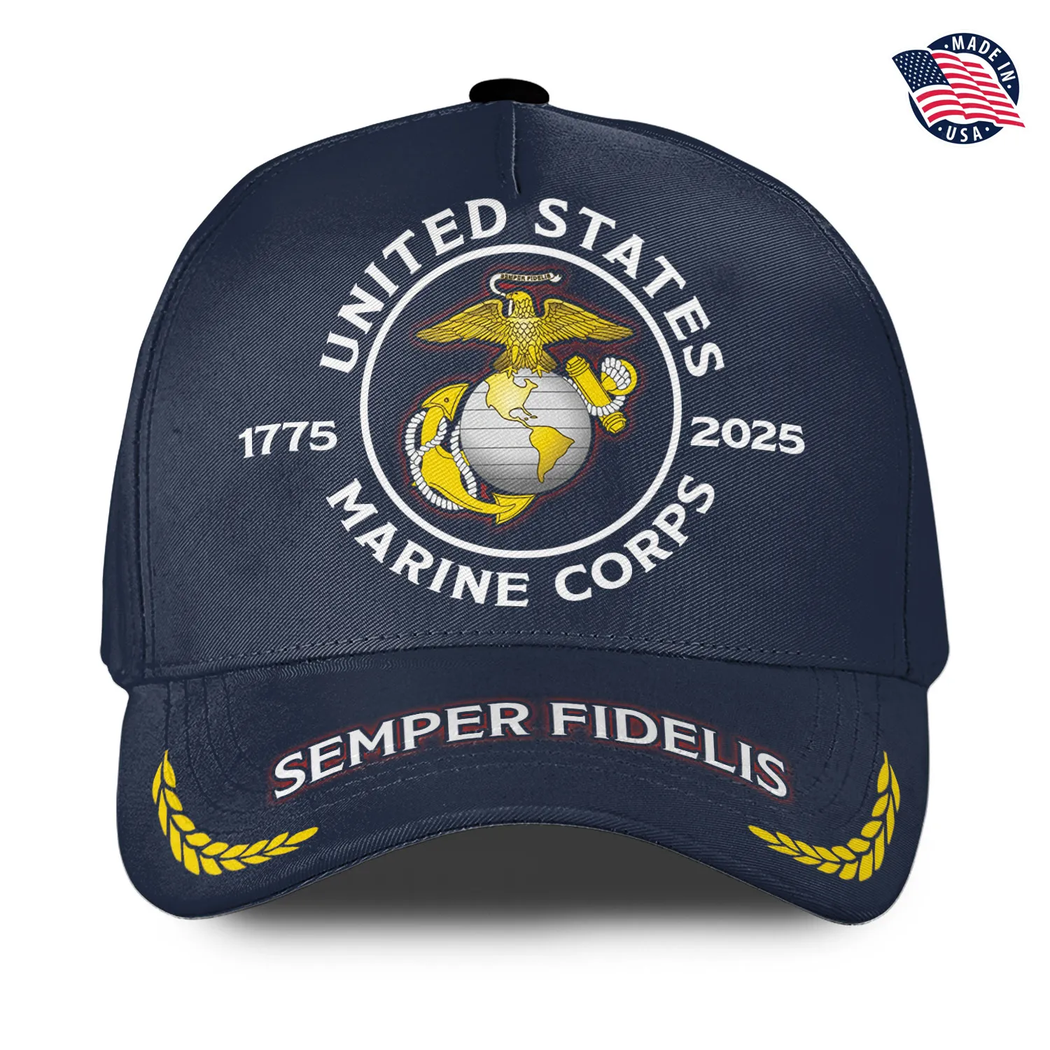 Classic USMC 250th Anniversary Printed Hat – Custom Rank & Name #000226