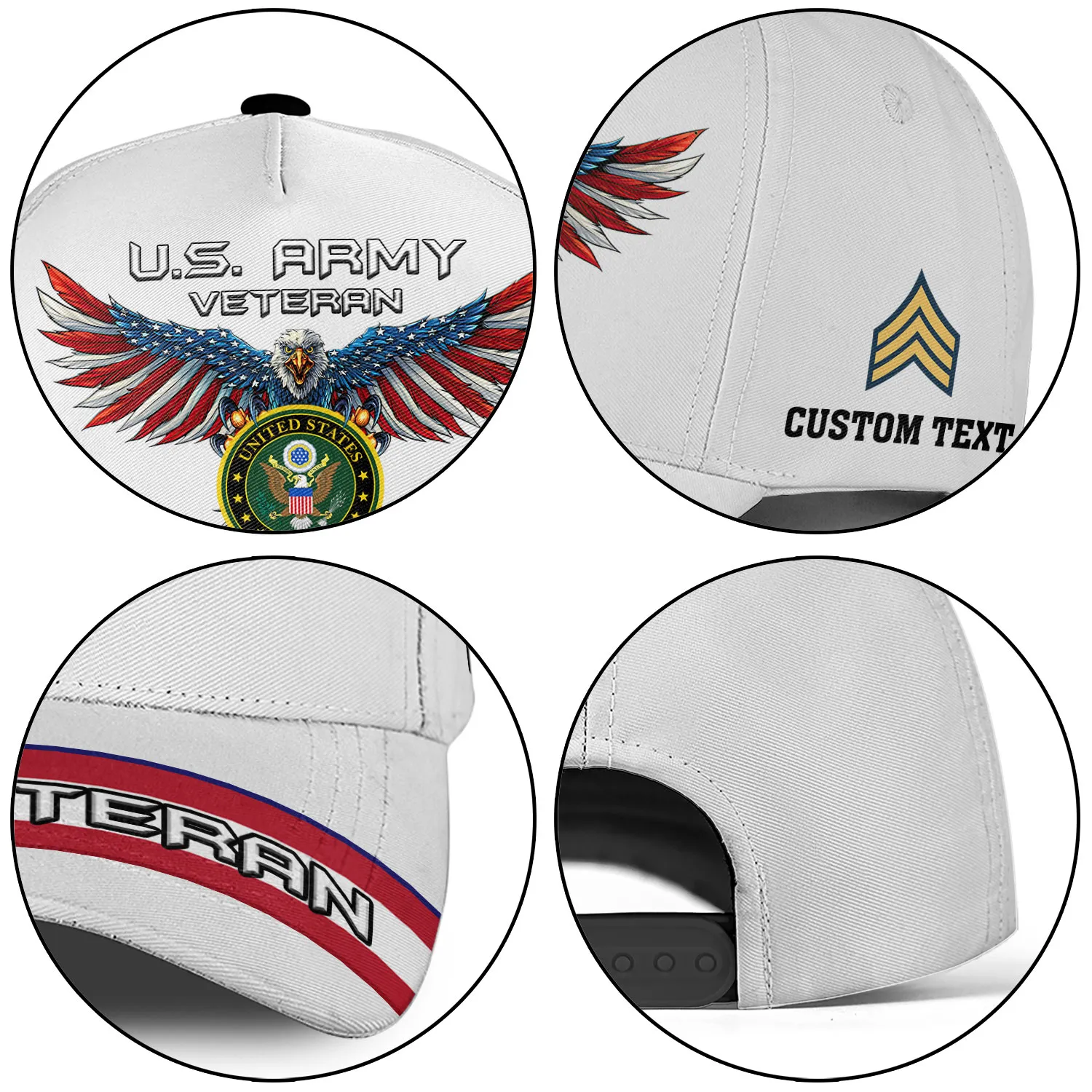 Custom Patriotic Eagle Veteran Hat - Personalized Branch, Rank & Name #000209