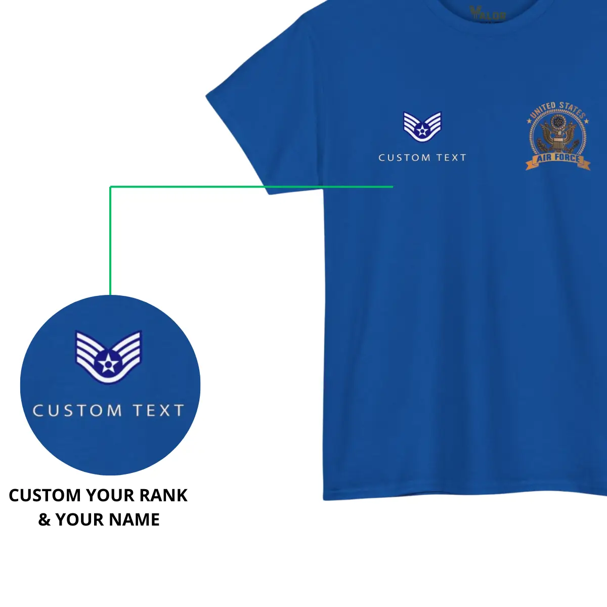The front features the USAF emblem along with space to customize your name and rank, making this T-shirt more than apparel – it becomes a piece of your story. A personal badge of honor for the Service that shaped your character, sharpened your grit, and built your legacy.