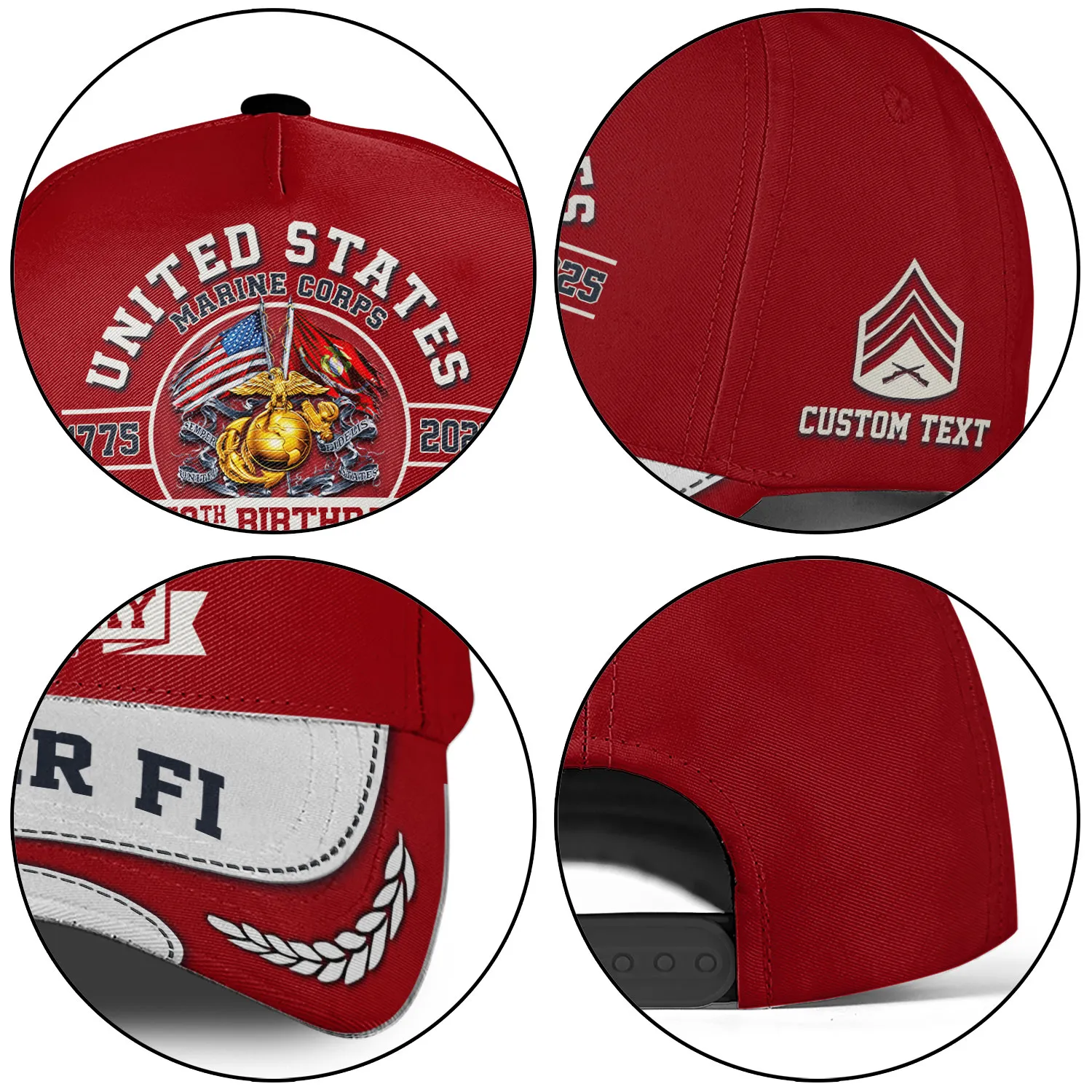 Custom USMC 250th Anniversary Printed Hat – Personalized Rank & Name #000222
