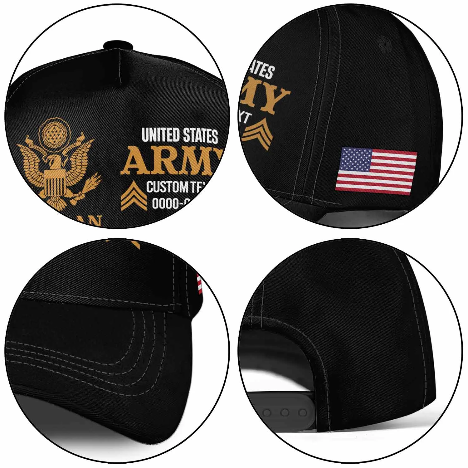 • High-Visibility Typography: Utilizing striking Gold and White lettering against a deep Black crown, this cap ensures your branch and details pop with absolute clarity.