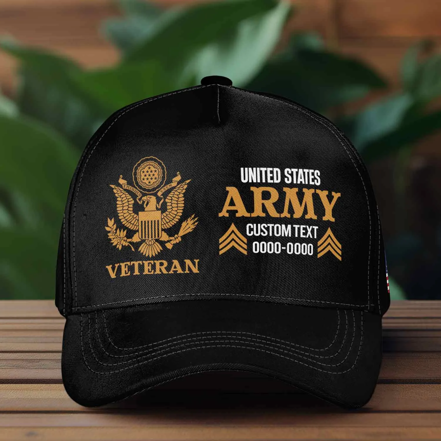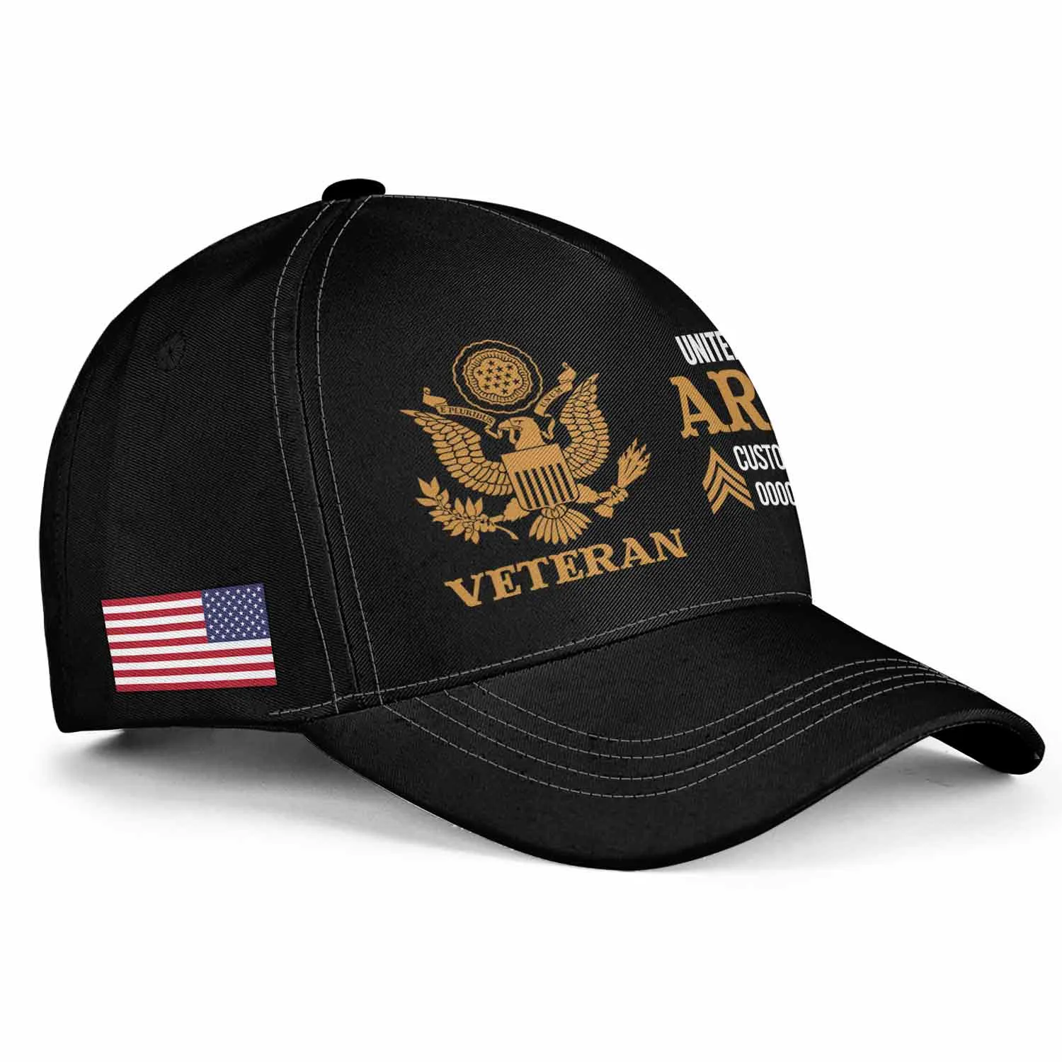 Customized Modern US Veteran Hat - Split Design Branch & Seal - Personalized Rank, Name & Years #000199