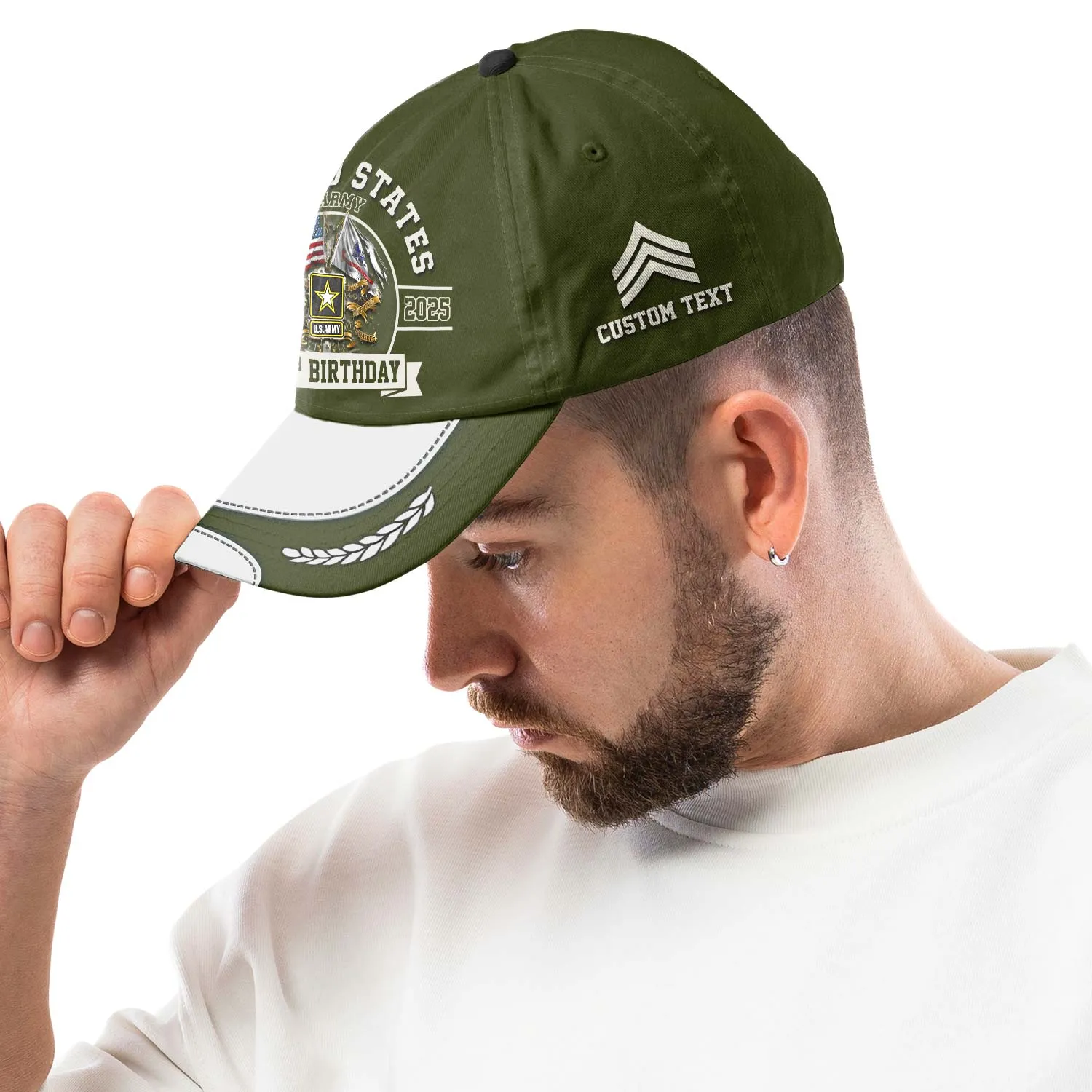 US Army 250th Birthday Custom Printed Hat - Personalized Rank & Name #000230