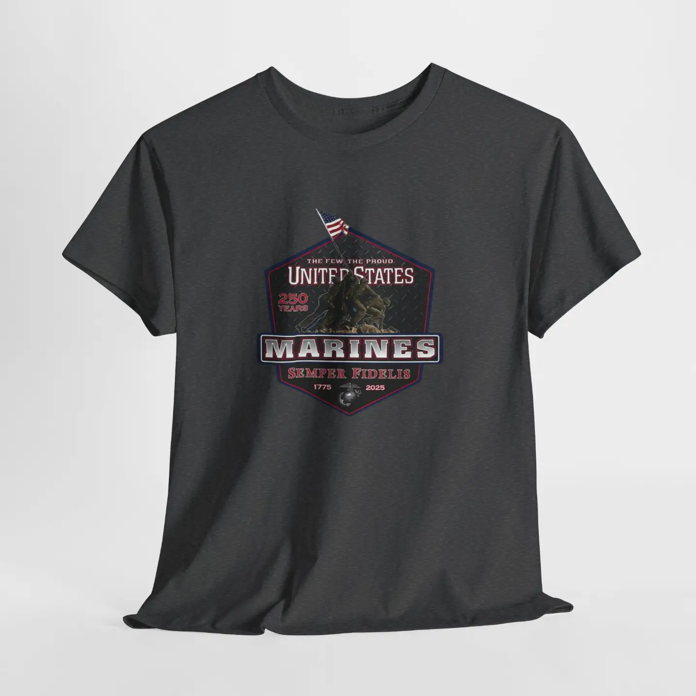 This tribute shirt honors 250 years of courage, service, and unwavering loyalty within the United States Marine Corps. Inspired by the legacy of those who have served, this design reflects the proud spirit of the Few and the Proud.